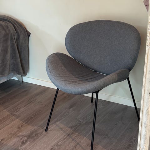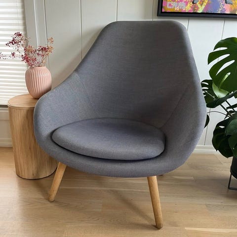Meget pen lenestol fra HAY. Modell: AAL 92, About A Lounge. Grå/blå i fargen, lyse treben i eik. Stor: B.84 x D.82 x H.101 cm. Ingen slitasje. Kjøpt på Illums Bolighus Oslo.