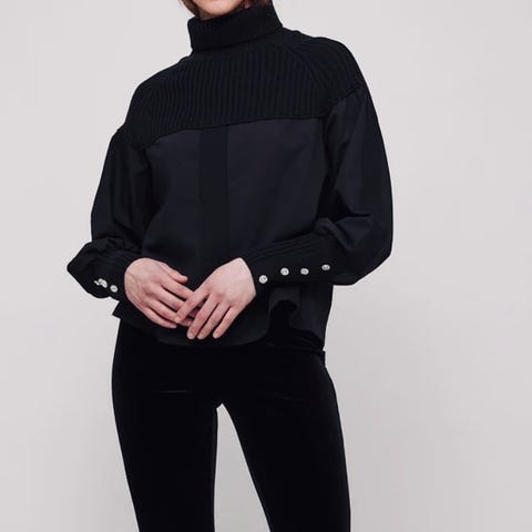 «Kjole fra Custommade som har en spesiallaget en-skulderkjole med ballongerm og en elegant blomsterdetalj på skulderen.