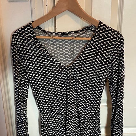 Veldig fin tunika genser som er sidelengs åpen på sidene, som vist i bilder.