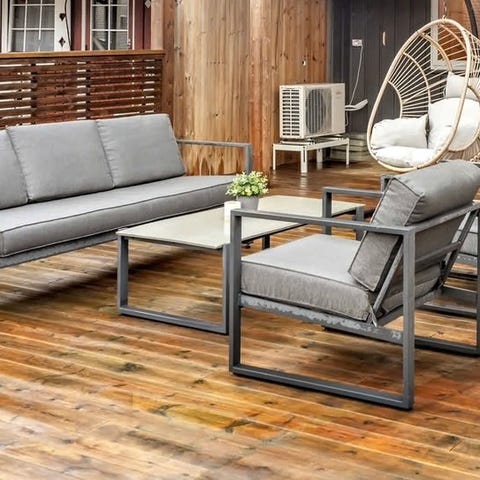 Loungegruppen og bordet kommer umontert. Enkel montering.