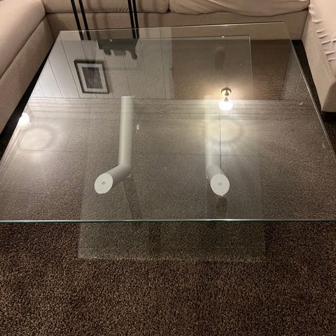 Vinrødt og grønt bord brukt som både nattbord og sofabord. 200kr tilsammen.