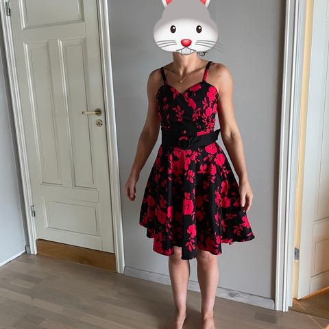 Selskapskjole med snøring i ryggen. Perlebroderier. Er nok str 38 Small