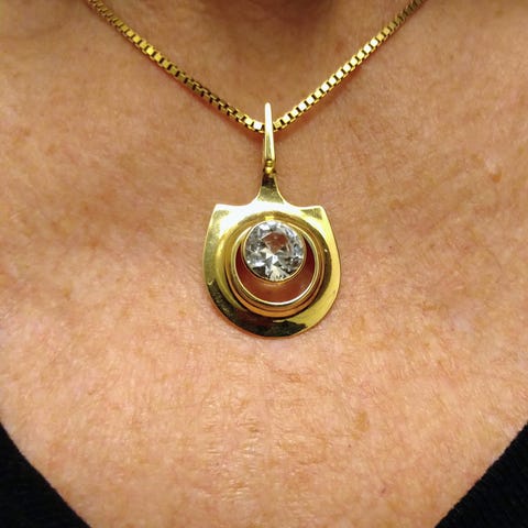 Den er gullblagt og har stempel på både halskjedet og anheng.