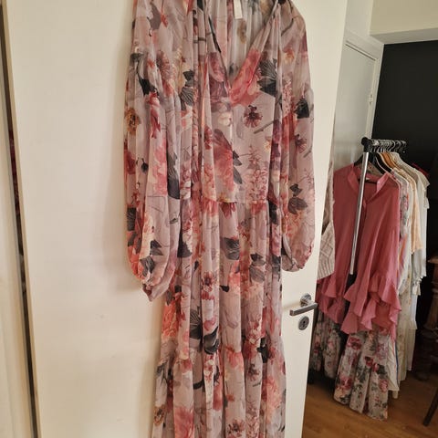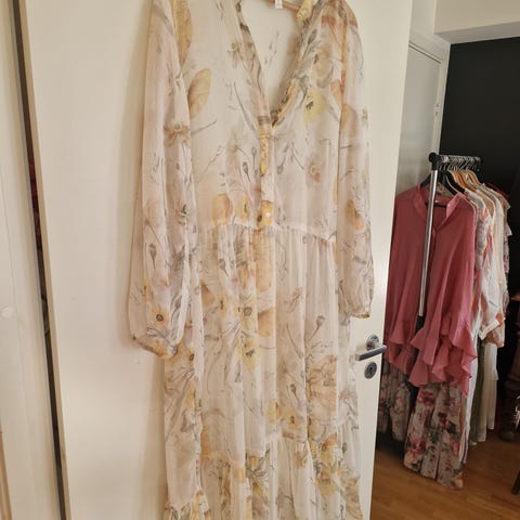 Helt nydelig sommerkjole, god som ny🌺 Den er lett og luftig, og det følger med en matchende underkjole (kan sees på bildet hvis man ser nøye etter).