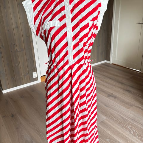 Lekker finsk vintage design kjole. Rosa og hvit stripete med trykknapper.