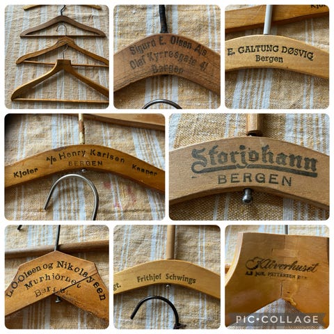 Trekleshenger fra en av Oslos eldste og med fasjonable klesbutikker. Bruksspor, men stødig og fin. Samleobjekt.