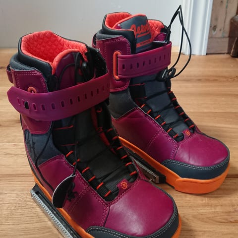 Slingshot jewel kite/wakeboardboots str 38.5. De er små i str, så hvis du liker de akkurat på foten så passer den i din vanlige str. Jeg er en 37 og liker bootsen litt romslig.
