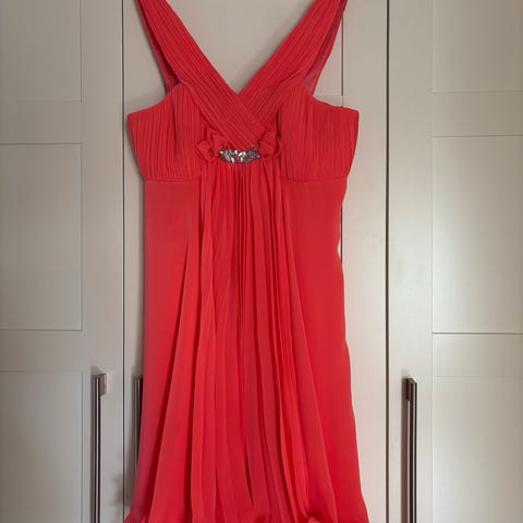 Pent brukt kjole fra Floyd, brukt kanskje en eller to ganger. Fersken /lakserosa farge. Vaffelstrikk i ryggen så veldig tilpasningsbar. Str 12, tilsvarer M/L.