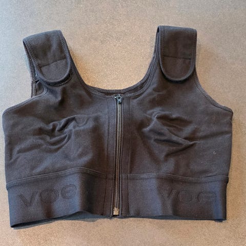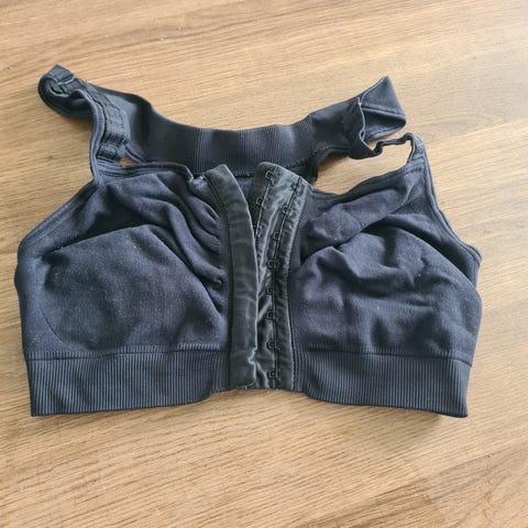 VOE postoperativ kompresjons-BH farge sort. Pent brukt. Størrelse 80 tilsvarer et brystmål på 80 cm, målt over det bredeste.