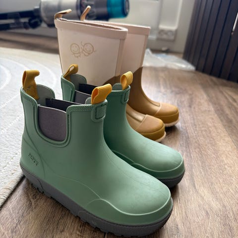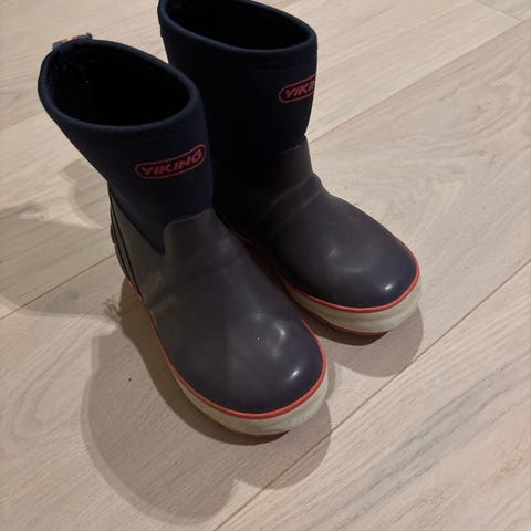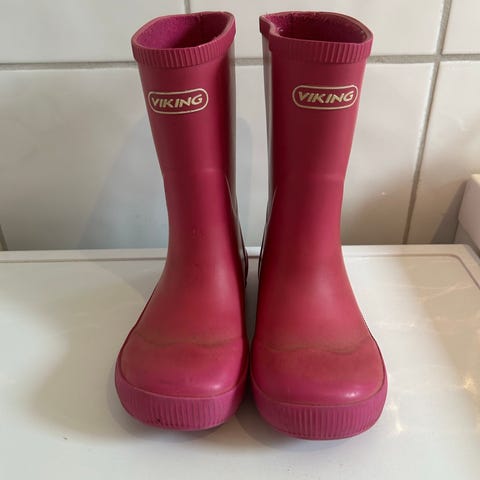 Pent brukte Viking gummistøvler i str 27 selges billig til 50,- da den ene støvelen er slitt på den ene tuppen og har et kutt i underkant av sålen. Dette går ikke gjennom og vi har ikke erfart at barnet har blitt våt på foten pga av dette. Selges som den er. Se bilder. Mye bruk igjen. Såler er fortsatt stødige og gode. Rengjort.