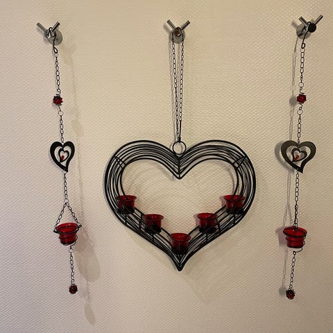 Vakre hengbare hjerter, stemningsfulle med telys i.