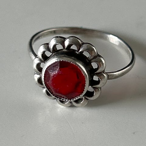 Selger vintage sølv ring. Den er fint brukt uten feil/ skader/slitasjer. Brukt av kun en dame. Det kan være en fint gave til hun dere elsker. Det kan fines stemple på ringen.
