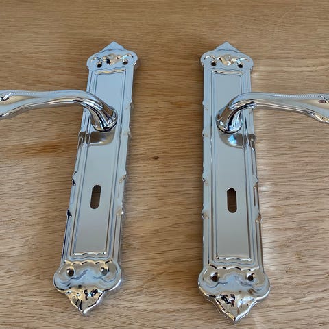 90kr per sett langskilt (Det ene i krom gis bort/kan følge med). 200kr med dørhåndtak.