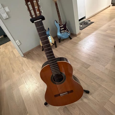 Strengene er over 16 år gamle så må nok skiftes. Den har også noen få merker etter å ha blitt flyttet opp gjennom årene. Se bilder for eksempel.