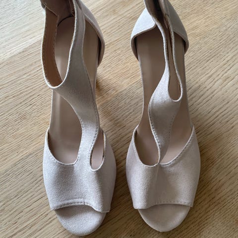 Vakre rosa høyhæler i str. 38. De har sløyfe bak og passer perfekt til bryllup, ball o.l. Bruksmerkene inni den ene skoen er etter bruk av gel pad fotstøtte.