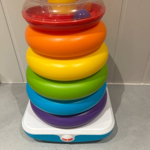 Kidsme - fargerikt stabletårn med ringer med forskjellige teksturer.