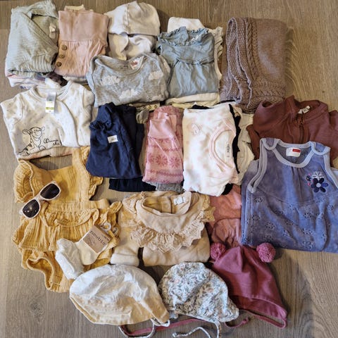 Pent brukte klær i 50 og 56 selges. Brukt til ett barn.