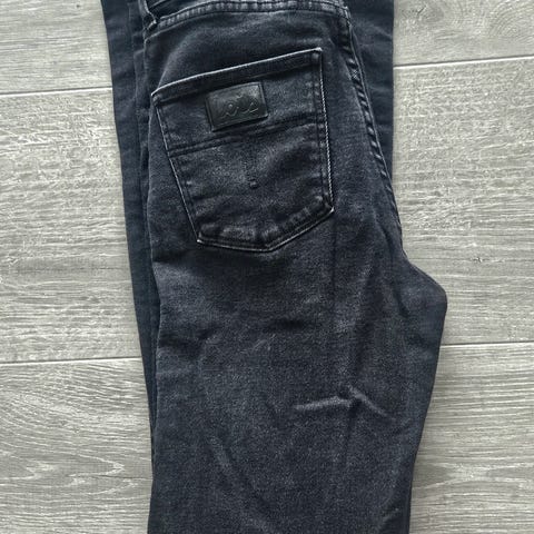 Mørkeblå jeans modell skinzee fra diesel. Bilde nummer 1 gir best Intrykk av farge. Selges da de er for små for meg. De er kun brukt 3-4 ganger. De har en slim fit hele veien med regular waist. Designet har noen små flekker på (se siste bilde). Disse er ikke spesielt synlige. Jeg merket dem ikke selv før jeg hadde brukt dem et par ganger.