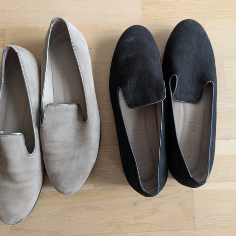 ⢠Begge er semsket skinn, skinn inni.