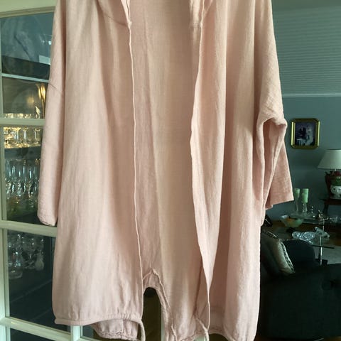 Ny morgenkåpe/badekåpe i bomull. Lys, sommerglad farge. One size. Knytning kan passe ulike størrelser. Hentes på Sinsen eller sendes mot porto.