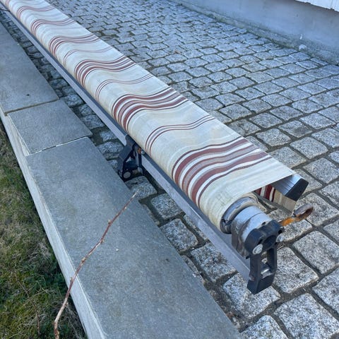 Der må alt demonteres, rull, kassett og frontdeksel må kappes, og duk må i så fall bestilles ny.
