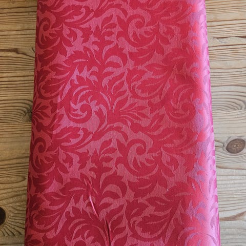 Vakkert solid og stødig Brokade-stoff , blankt og pent . Str : 338 x 140 cm . Stoffet er aldri brukt til noe bare ligget nedpakket i en kiste . Det er som nytt . Selges til oppgitt pris . Kan hentes eller sendes . ( Bruker ikke fiks ferdig )