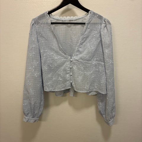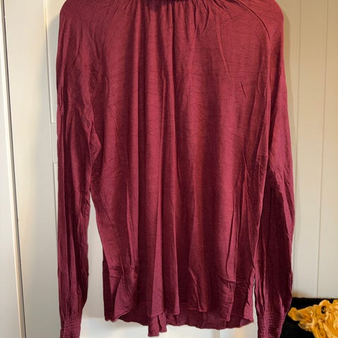 Love er en fantastisk nydelig bluse. Den har en vid fasong, med lange ermer. Har kun brukt den 2 ganger! Perfekt med en tights eller en jeans. Den er faktisk L, men veldig liten, passer til S og M