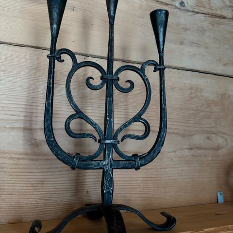 Pen grå lysestake i stål til kubbelys. Staken er 30 cm høy. Pen stake som fremstår som ny. Røft design.