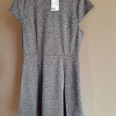 Den føles lett og behagelig på. Kjolen har rund hals, smal midje og korte ermer. Den har glidelås på ryggen.