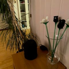 Huawei Soundstone Bluetooth høytaler. Grei lyd til størrelsen, er oppladbar.