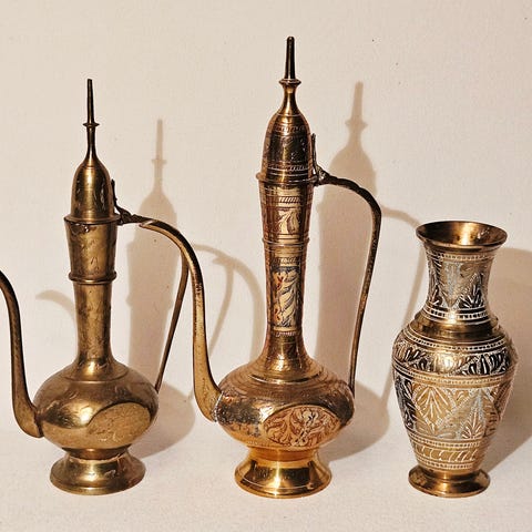 Aftaba: Orientalske kaffe/te kanner i ornamentert messing