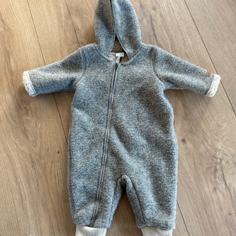 Veldig praktisk å bruke både i bilstol og vogn, men vi fikk ikke brukt denne da vi hadde flere dresser i samme størrelse. Kan pakke inn både hender og føtter. Deilig myk bomull og med søte ører på hetten.