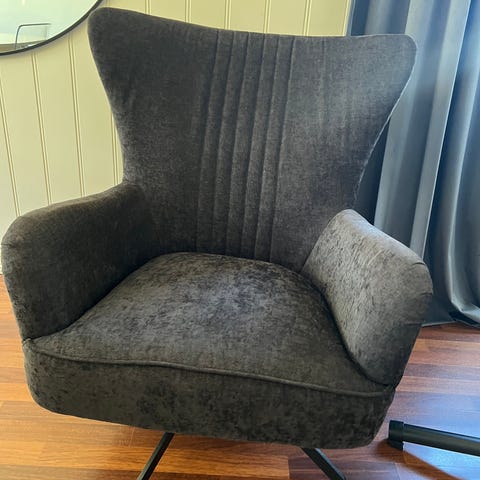 Kjøpt på møbelringen 21. nydelig stol i grå velur. God å sitte i. Selges grunnet fornying.