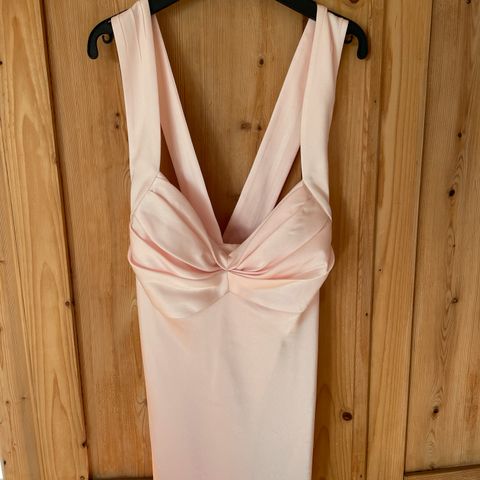 Nydelig kjole i lys beige/kremfarge med kjempe fin sløyfe bak. Fra Asos.