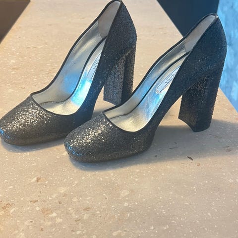 Klassiske Prada skinn sko. Hæle er 10 cm. Noe bruksmerker men ser fortsatt fint ut.