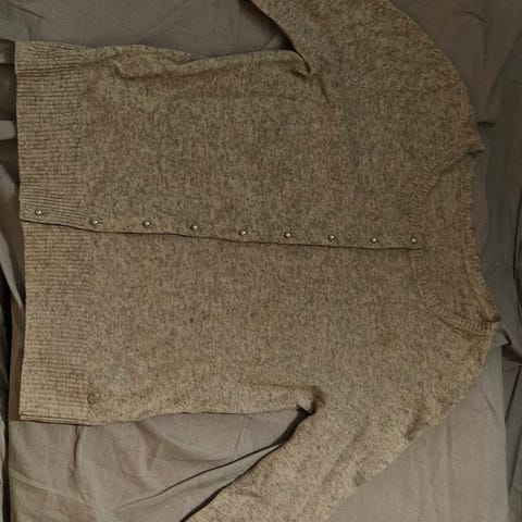 Angora offwhite overdel fra merket Giani Feroti. Medium. Flott, myk, varm og tykk angora ull 😊 Dessverre noen flekker foran. Selges slik den er. Ingen hull.