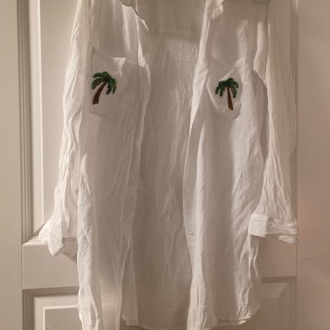 Selger en fin hvit linskjorte fra Claire. Str. 38. Paljetter på lommen. Lange ermer som kan brettes opp med knapp. Like fin som ny - brukt et par ganger. Selges for 350,-