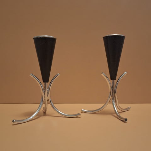 Har to fine vegg lysestaker i svart lakkert metall for salg . Desse gir ei flott lys på veggen pga utformingen og alle dei små hulla.
