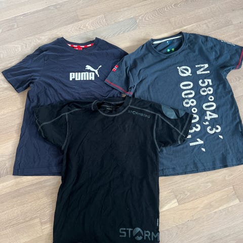 Str M-L, 6x trenings T-skjorter fra forskjellige merker. Blant annet Puma , Nike , Adidas osv. Så gode som nye. Selges samlet til 300kr (50kr stk)