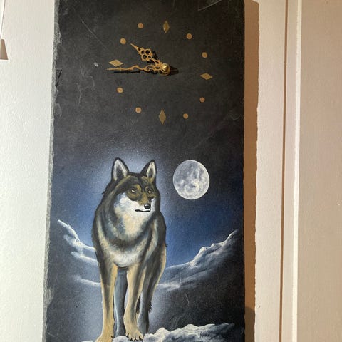 ANTIKK VEGG KLOKKE I STEIN. GI BUD