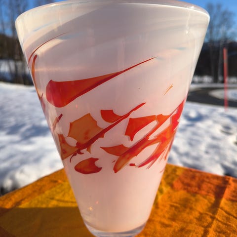 Vakker vase med mål - høyde: 23 cm- diam: 10 cm øverst.