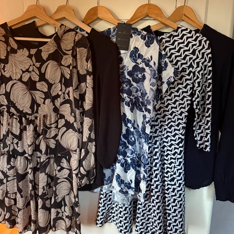 Selge 4 kjoler i Str S samlet. Pent og lite brukt. En i blå fra Zara. 75kr/plagg