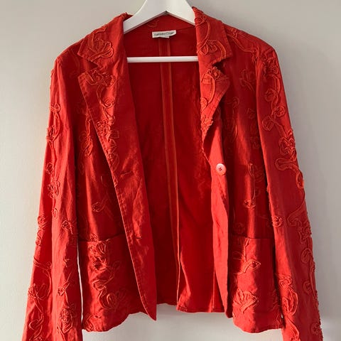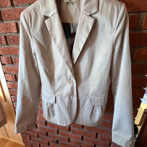 Nydelig, lett sommer blaizer i 100% Cotton fra O'stin. 3/4 ermer, splitt bak. Brystvidde er 50 cm x 2. Lengde er 66 cm. Pent brukt kun et par ganger.