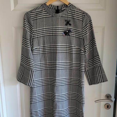 Klassisk kjole i sort og hvitt hundetannmønster.