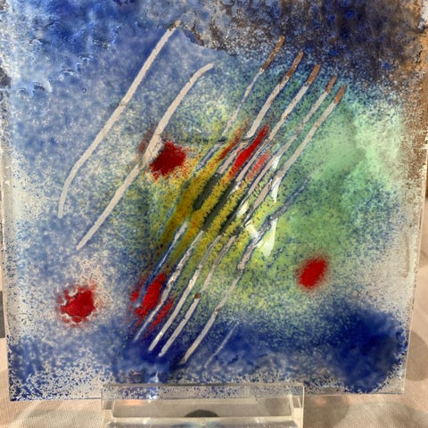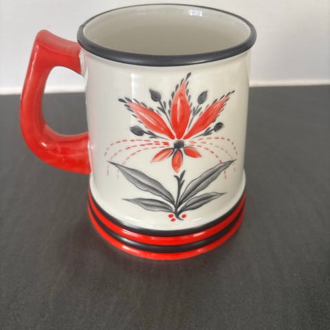 Høyde 10,5 cm, bredde bunn 8 cm, bredde åpning 6,5 cm