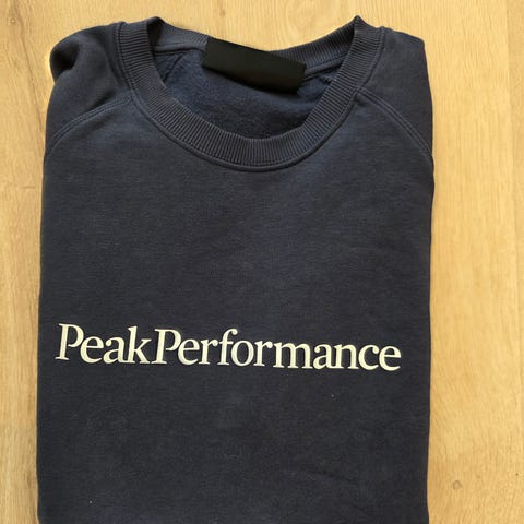 Ubrukt blå Peak Performance genser med krage.