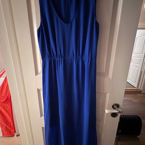 Selger nydelig ubrukt lang kjole som aldri brukt, foret og har glidelås på siden.