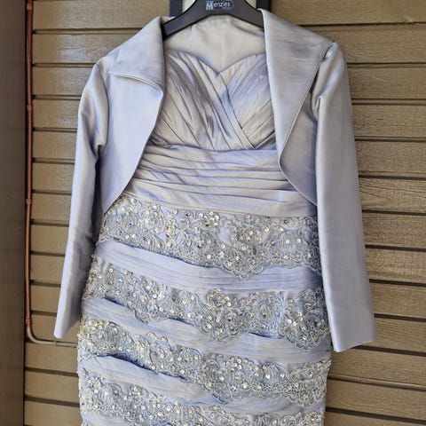 Kjøpt og brukt som ballkjole for Gardeball. Kun brukt en gang. Er sydd etter mål, men er som en størrelse S.