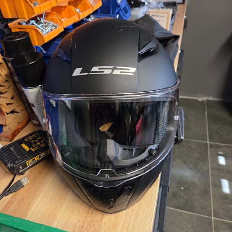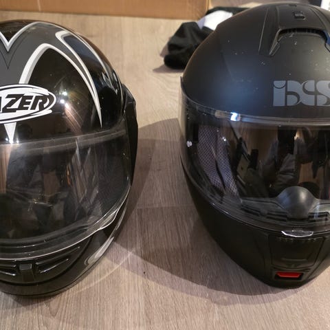 -Kun brukt hette i hjelmen, pent brukt Hjelm Shoei NXR str L (tilsvarer Xl hos KBC, LS2 osv) med gullvisir og svart (photochromic), med sena s20 intercom 6000 kr.