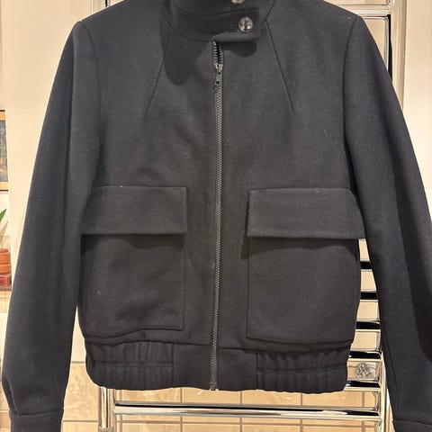 Nydelig kremhvit strikkejakke fra Filippa K, med flettestrikk på ermene og foran. Jakken er 60% bomull og 40 % akryl. Det står str L på jakken, men den er mer str M eller oversize S.